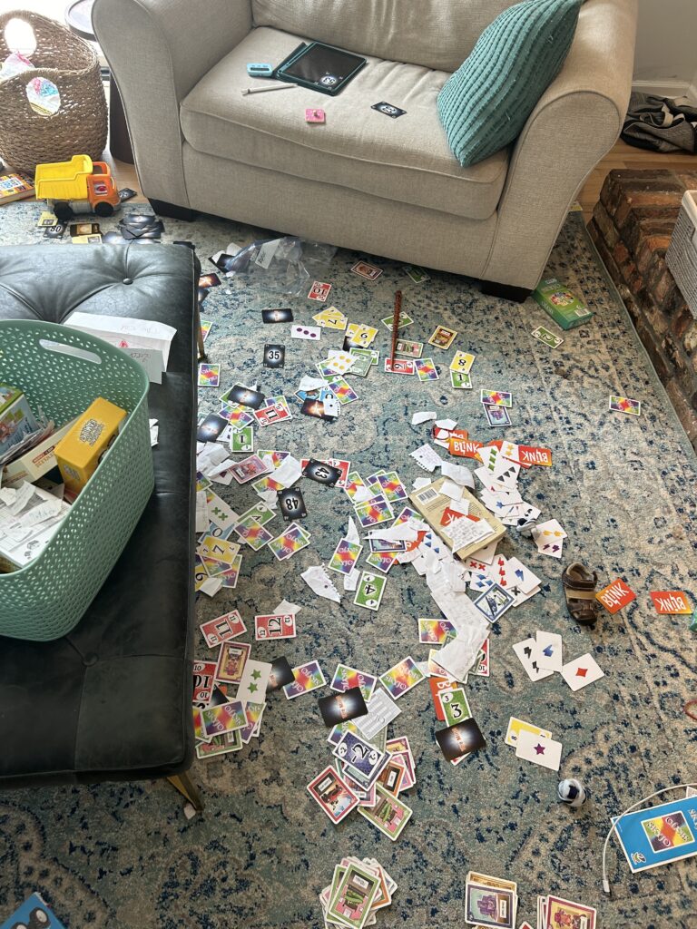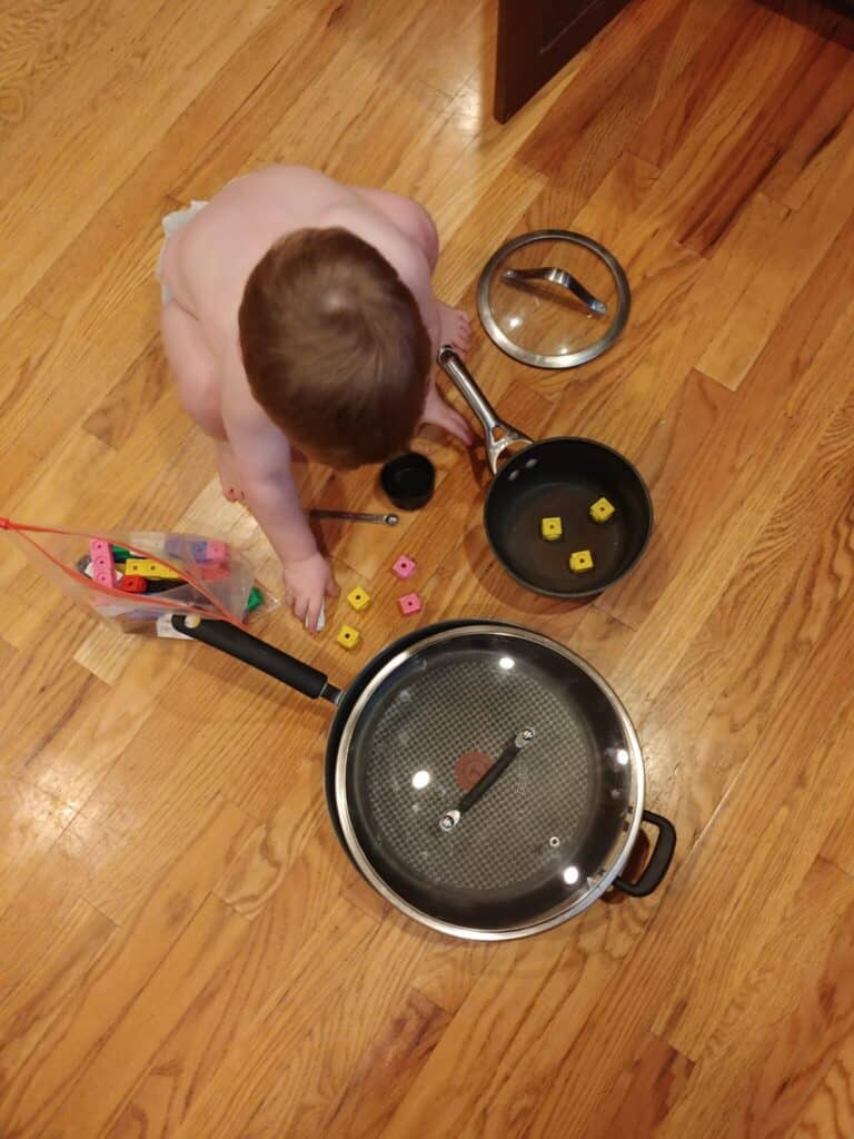 I showed the toddler how to dump them out and put them in. This occupied a little guy for 25 minutes — miracle-level stuff when you’re explaining polynomials to the oldest child.