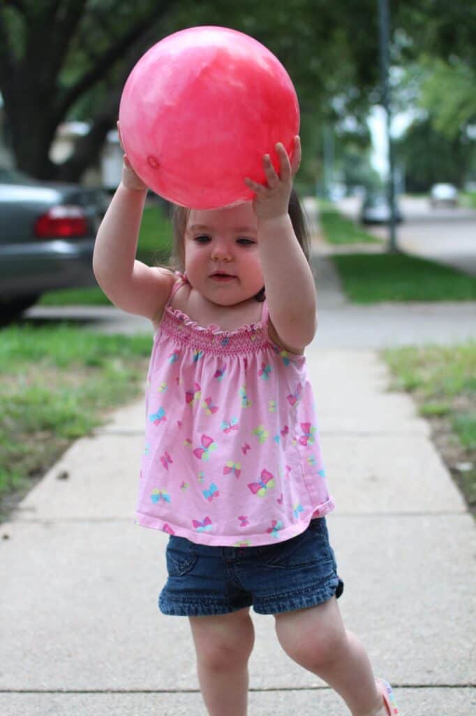Bouncy balls make for the best gross motor activities. Kicking, chasing, throwing with two hands — much fun for any age.