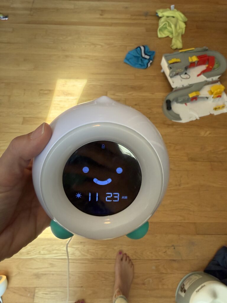 The clock we have used for all our kids! If you consistently enforce the expectations and set it for a reasonable amount of time, it works!! Every day at 7:15 am and again after a 2 hour rest time, my almost 4 year old cheerfully comes out of his room and says, “My clock turned green, Mommy!”