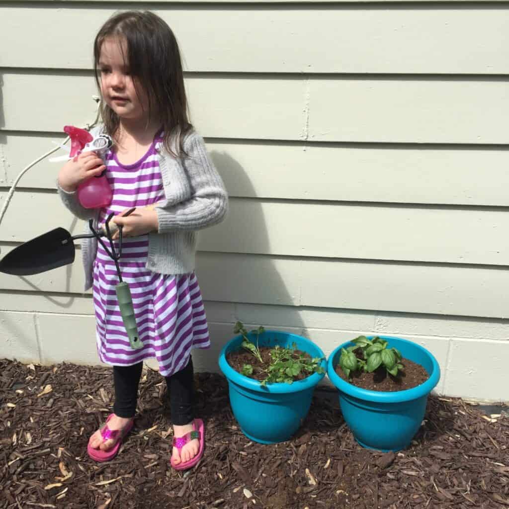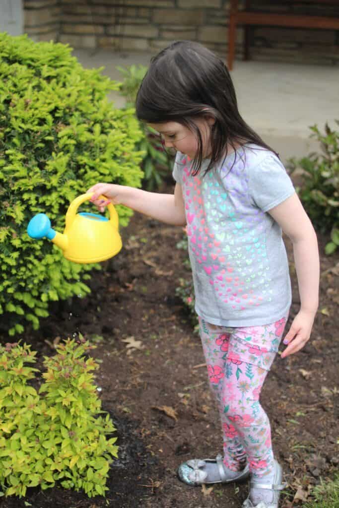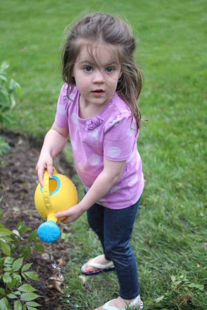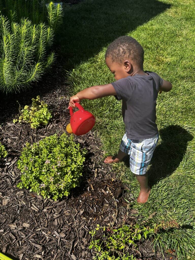 Send them to the backyard with a small watering can while you finish school work with the big kids through the window. Our little guy will water the same 3 plants for 20 minutes straight.