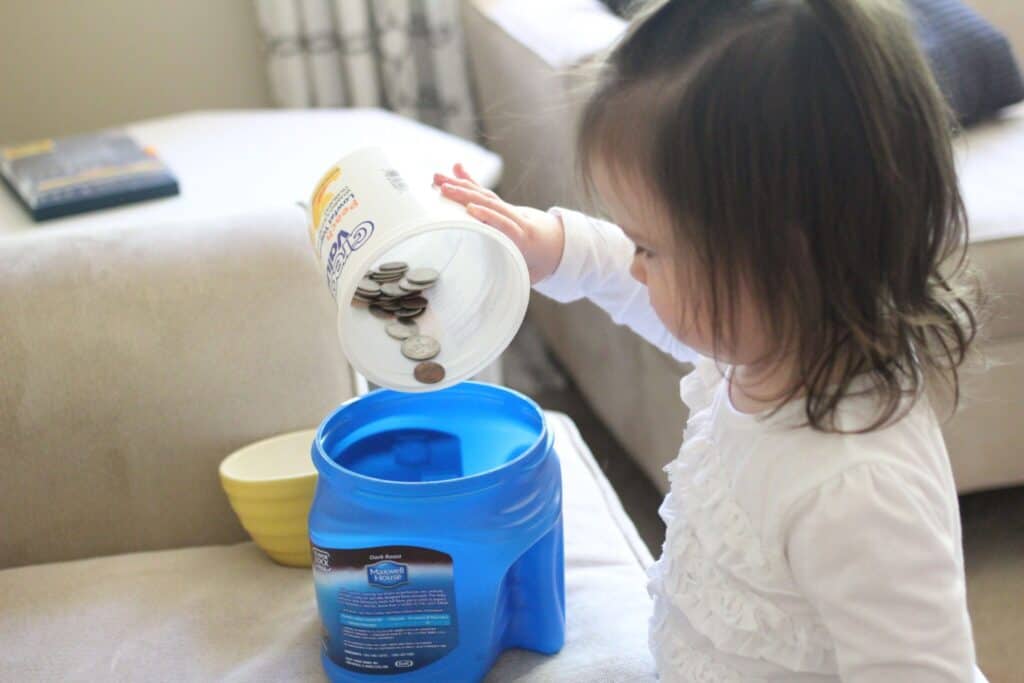 Coins are so much fun to drop in the slot because they make a loud clank! Just be sure they’re well past putting small things in their mouth.