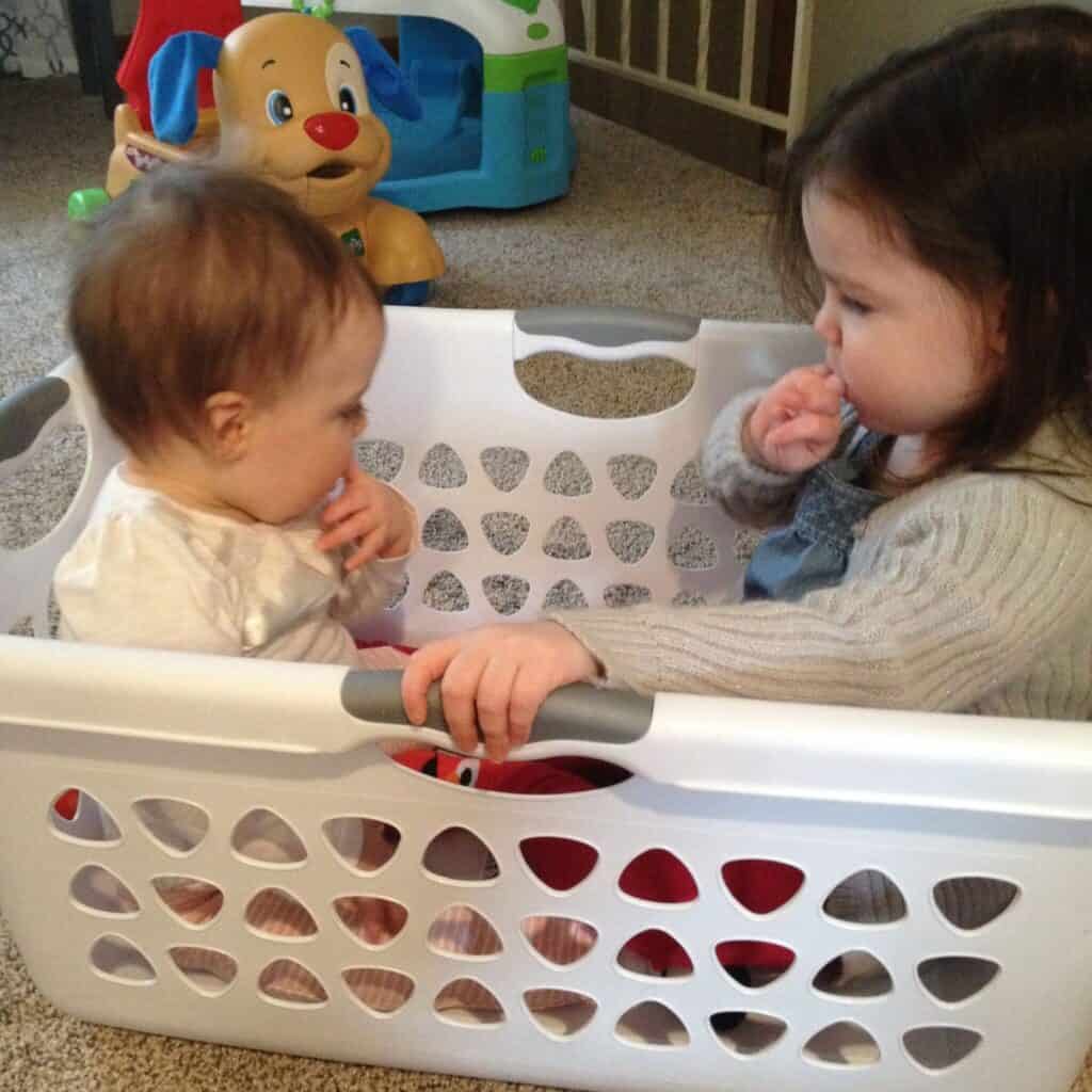 Sit in them. Push them around. Fill them with stuffed animals. Laundry baskets are endlessly entertaining for little people and cost basically nothing.